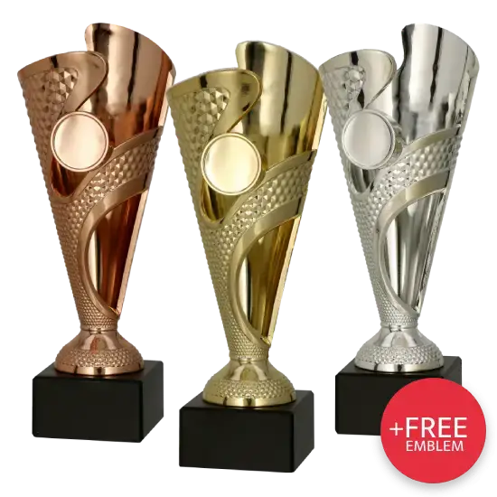 La Coupe 9281 est disponible en trois couleurs : or, argent et bronze. Elle est ainsi idéale pour récompenser les participants occupant respectivement la première, la deuxième et la troisième place. Une solution pratique pour créer un ensemble de récompenses cohérent pour toute cérémonie.