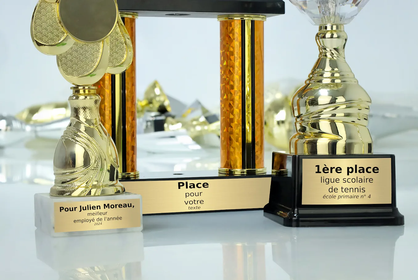 La gravure personnalisée confère à chaque trophée un caractère unique et en fait un souvenir inoubliable.