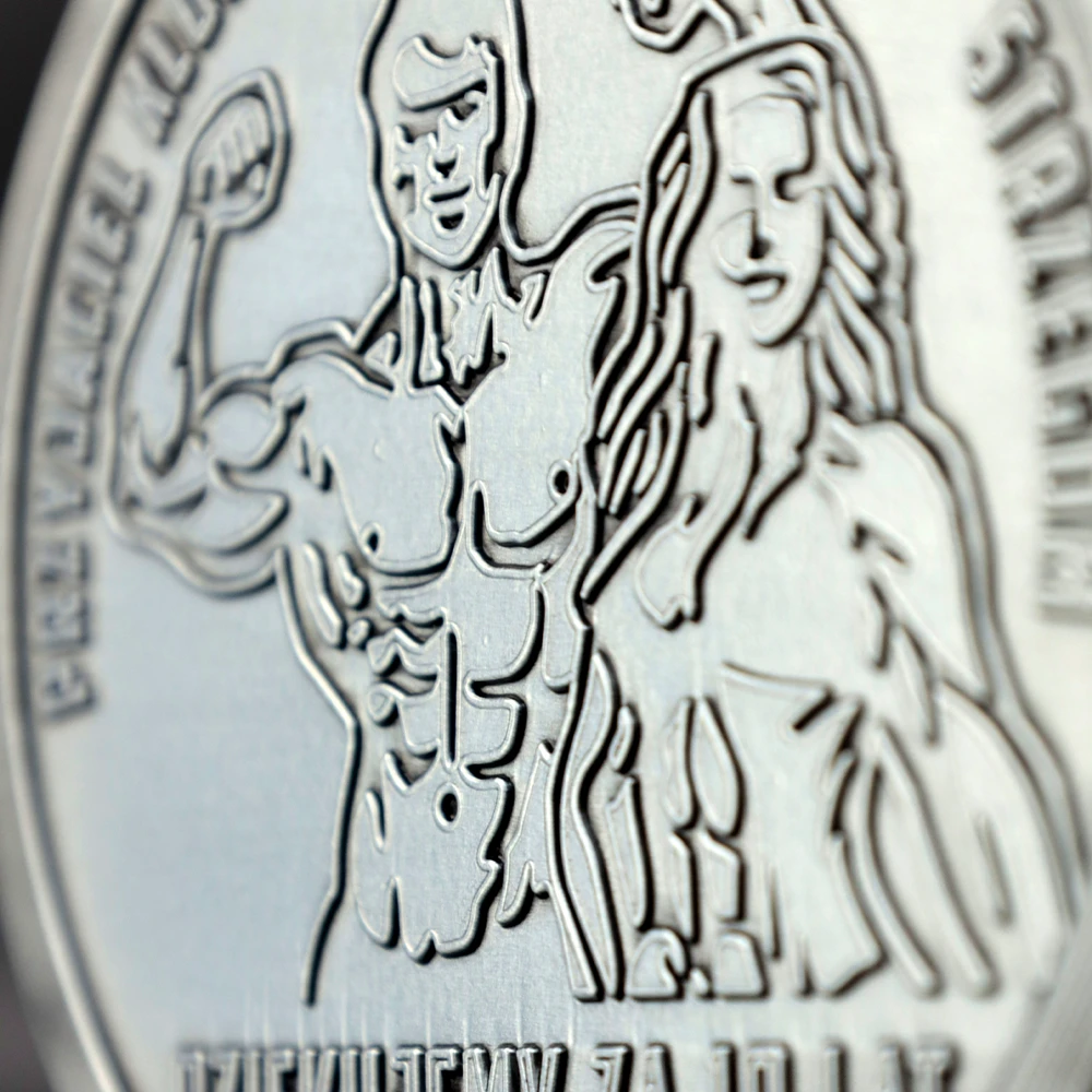 Trophée en métal fondu avec deux inserts, doté d’un design élégant. Les ornements plastiques sont inspirés par la culture du bodybuilding. L’ensemble de la surface a été patiné, brossé et revêtu de poudre, pour un rendu à la fois raffiné et durable.