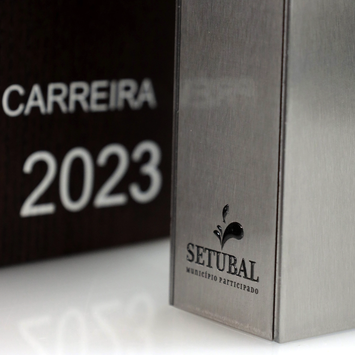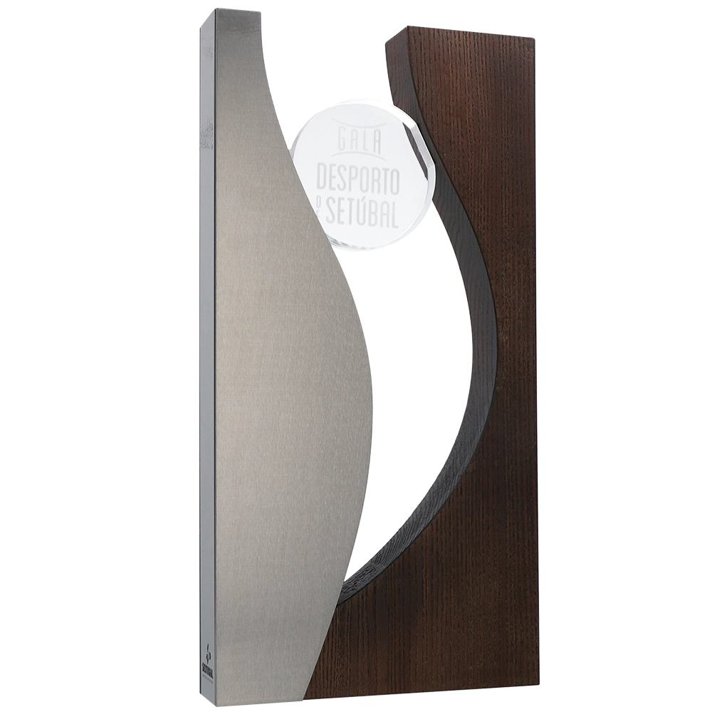 Les prix remis cette année dans le cadre de la Gala Desporto de Setúbal sont de véritables chefs-d’œuvre. Ils ont été fabriqués en bois naturel, sculpté dans une forme moderne et élégante. Une plaque métallique argentée, brillante à la lumière, complète le design. Un élément circulaire en acrylique, avec le nom de l’événement imprimé, relie tous les composants de manière harmonieuse.