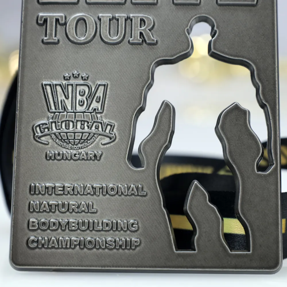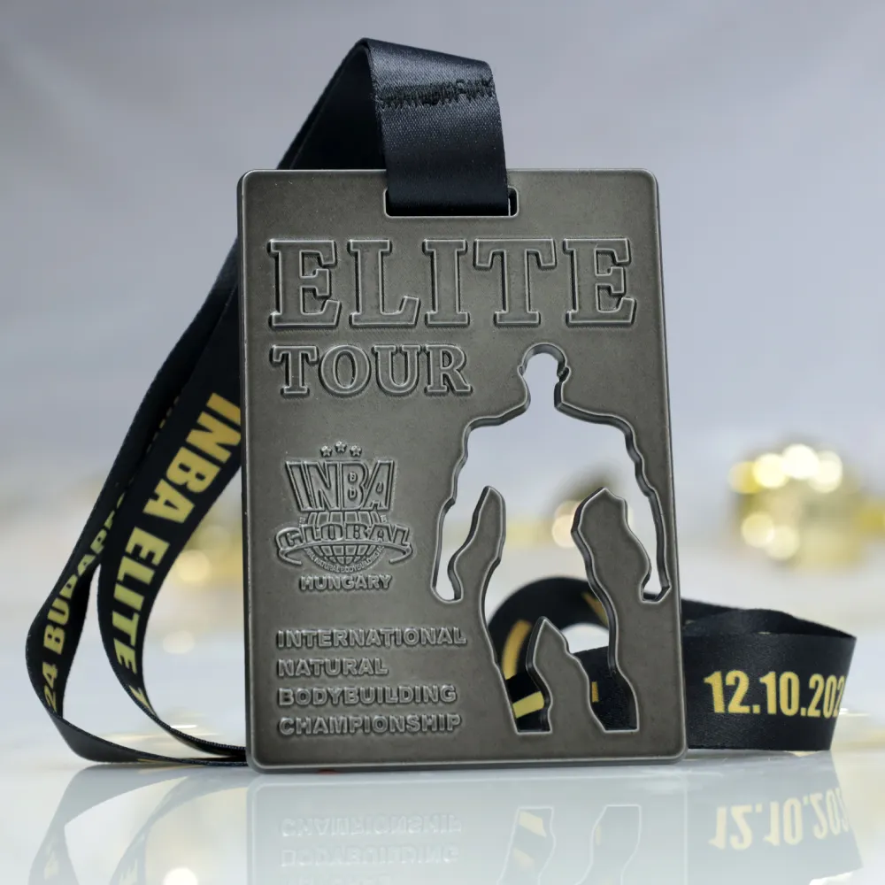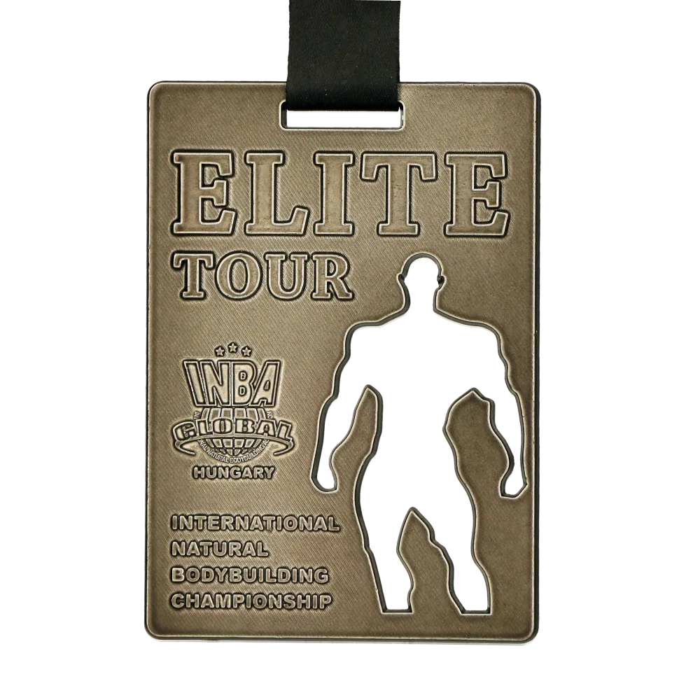 Cette médaille a été remise dans le cadre de l’INBA Elite Tour en Hongrie, un championnat international de bodybuilding naturel. Son design rectangulaire, avec une silhouette de bodybuilder découpée, confère à la distinction un aspect puissant et marquant. Les gravures mettent en avant le professionnalisme de l’organisation ainsi que le caractère international de la compétition.