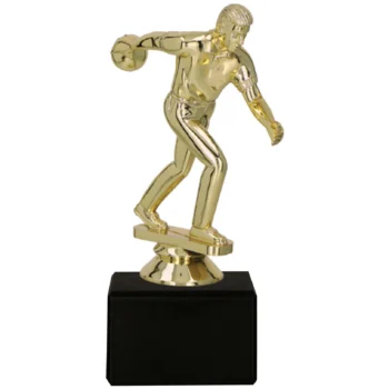 Trophée en plastique Bowling S7F154/G légère et attractive représentant un joueur lançant une boule est un véritable succès lors des tournois scolaires et pour enfants. Elle plonge immédiatement les participants dans l’ambiance de la compétition.