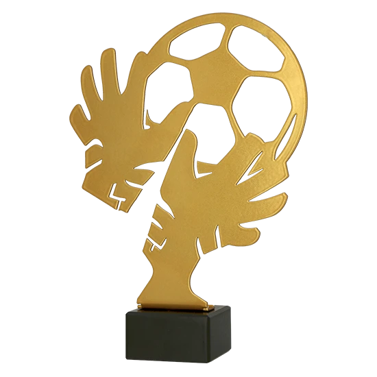 Trophée en métal Attributs du Gardien est une récompense unique qui illustre parfaitement l’essence de l’un des postes les plus importants sur le terrain. Il représente un ballon de football accompagné de gants de gardien – symboles de vigilance, de réflexe et de détermination inébranlable.