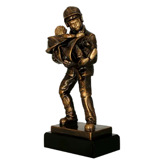 Trophée en résine Pompier sauvant un enfant – distinction pour courage et héroïsme